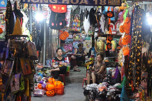 Những ngày cuối tháng 10 không khí Halloween lại tràn ngập phố phường Hà Nội, những con phố đồ chơi như Hàng Mã, Lương Văn Can đã bày bán đủ thứ trang phục, đồ hóa trang từ đa dạng, phong phú đến độc đáo.