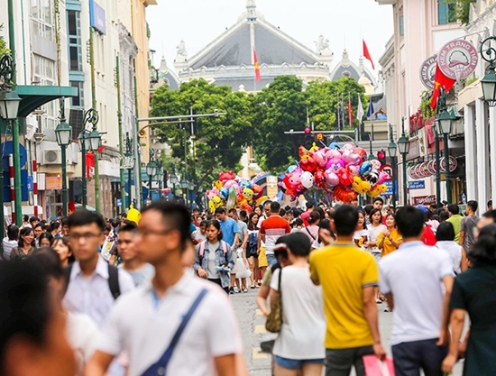Thời tiết đẹp, người dân đổ về không gian đi bộ quanh hồ Gươm để vui chơi. |