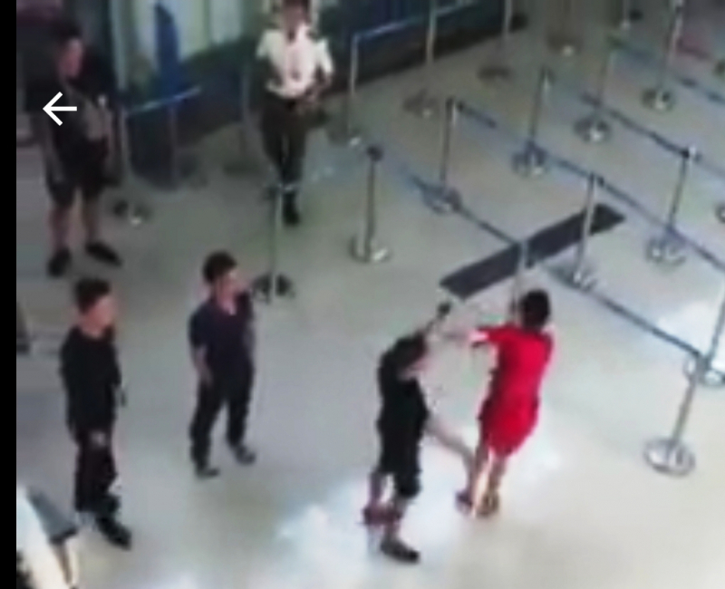 Tại quầy check-in, nhóm người này gọi nữ nhân viên của hãng Vietjet Air chụp ảnh chung nhưng nữ nhân viên này không đồng ý. Sau đó, không hiểu lý do gì nhóm người này đã tát vào mặt, dùng chân đạp một nữ nhân viên hàng không mặc bộ đồ đỏ khiến nữ nhân viên này ngã xuống sàn nhà.