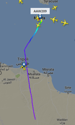 Đường bay của chiếc máy bay bị không tặc khống chế. - Đồ họa: Times of Malta. |