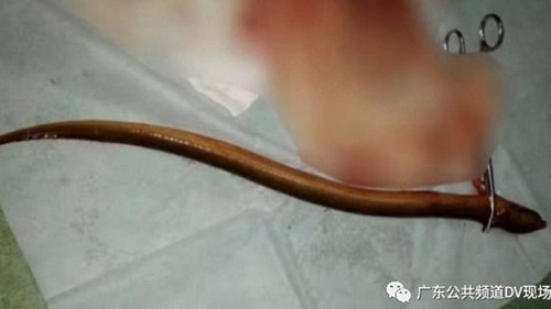 Các bác sĩ tại Quảng Châu Trung Quốc đã rất vất vả mới lôi được con lươn dài nửa mét còn sống nguyên từ trong bụng của một người đàn ông ra ngoài.