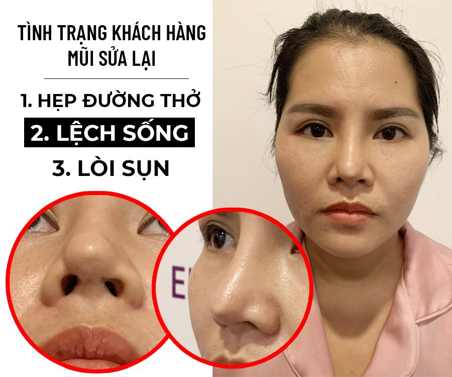 Tình trạng chị P trước khi nâng mũi sửa lại lần thứ 5 |