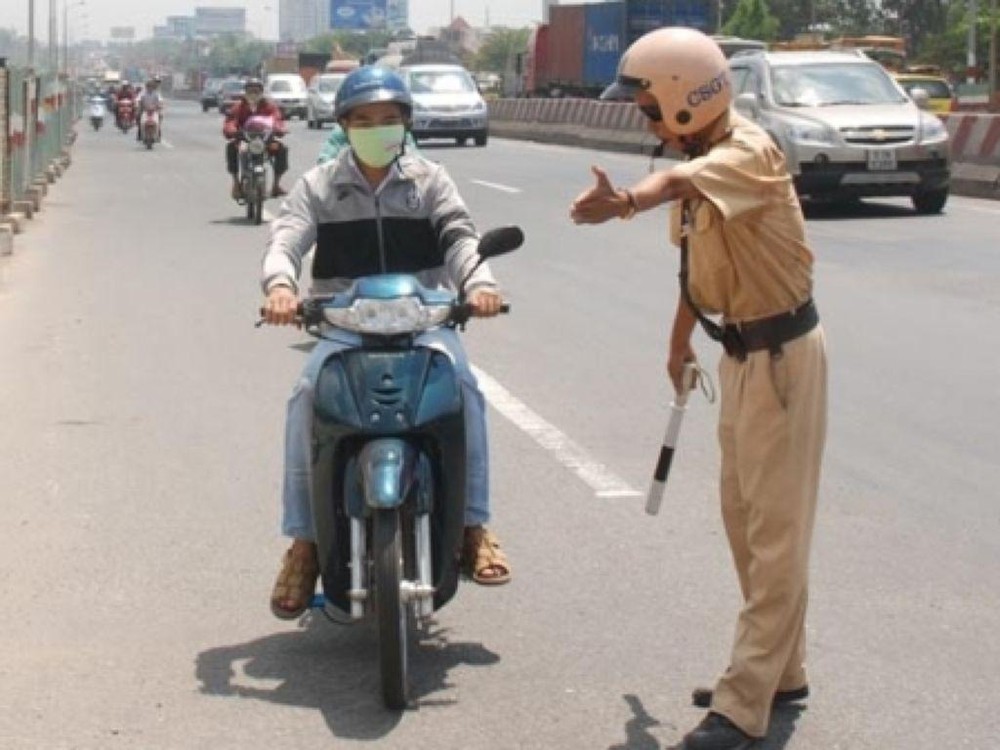 CSGT dừng phương tiện để kiểm tra. Ảnh: VnExpress |
