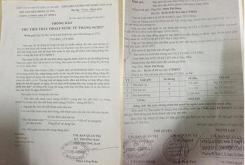 Cụ thể, ngày 20/6/2016 Ban quản trị chung cư CT4, CT5 ĐN1, CT5 ĐN2 đã thuê đơn vị HTX Thụy Điểm quản lý, vận hành và sửa chữa những vấn đề của chung cư. Để đơn vị này có thể vận hành thì hàng tháng người dân phải đóng phí dịch vụ và phí bảo trì cho BQL – HTX Thụy Điển. Mọi việc tưởng chừng sẽ diễn ra suôn sẻ thì vào ngày 28/3/2017, những người dân nơi đây bất ngờ nhận được thông báo “Thu tiền thất thoát nước từ tháng 4/2017”.