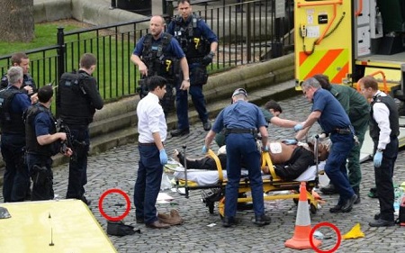 Trước đó, nhiều nhân chứng cho biết đã nghe thấy tiếng nổ lớn. Viên cảnh sát bị đâm trong khuôn viên toà nhà Quốc hội.