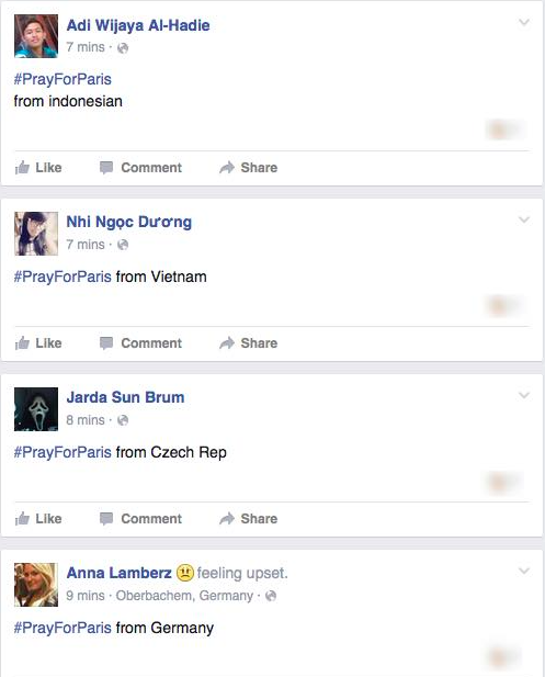 Người sử dụng Facebook từ khắp nơi trên thế giới chia sẻ sự đồng cảm với Paris. |