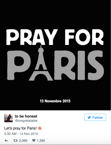 Cộng đồng mạng toàn thế giới bày tỏ sự chia sẻ, cảm thông với nước Pháp. |