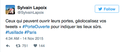 Dòng Tweet từ một nhà báo Người Pháp Sylvain Lapoix: “Những người có thể thoát ra khỏi nơi mắc kẹt, hãy đăng những dòng tweets của mình để mọi người cùng tìm thấy vị trí an toàn”.