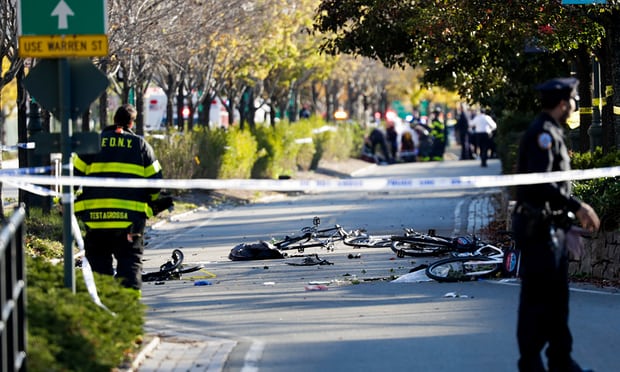 Một xe bán tải lao vào đường dành cho người đi xe đạp và đi bộ hồi 15h05 chiều 31/10 (giờ địa phương) ở vùng Hạ Manhattan, New York, gần các trường học và một công viên khi học sinh và phụ huynh đang chuẩn bị mừng Halloween.