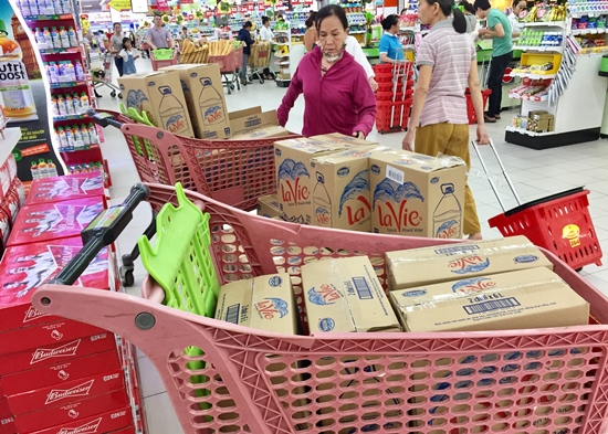 Rộn ràng đi mua nước đóng chai. Ảnh: Báo giao thông |