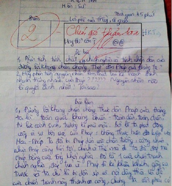 Đọc xong lời phê của cô giáo chắc nam sinh này từ nay về sau sẽ không dám chêm tiếng Anh vô tội vạ nữa.