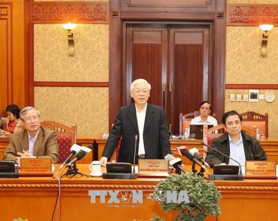 Tổng Bí thư Nguyễn Phú Trọng phát biểu tại Cuộc họp Ban Bí thư. Ảnh: Trí Dũng/TTXVN |