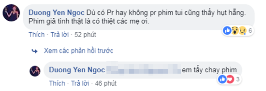 Ở dưới phần bình luận, Dương Yến Ngọc cũng nhấn mạnh thêm là dù có phải PR phim hay không thì tin tức này cũng khiến cô cảm thấy hụt hẫng. Cựu người mẫu khẳng định sẽ "tẩy chay" bộ phim mà Kiều Minh Tuấn và An Nguy tham gia.