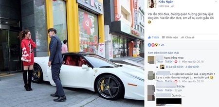 Trước đó, hình ảnh Kiều Ngân được một người đàn ông đưa đón bằng siêu xe Ferrari trắng có giá hơn 10 tỷ đồng tại Hàn Quốc đăng tải công khai trên mạng khiến nhiều người cho rằng đây chính là bạn trai của Kiều Ngân.