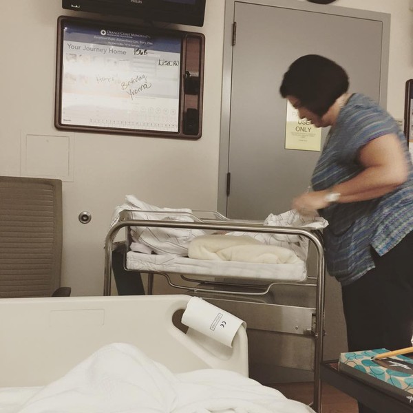 | Kim Hiền chia sẻ hình ảnh cô nhập viện sáng nay để chờ sinh. Bên cạnh cô luôn có ông xã túc trực và chăm lo cho cô. |