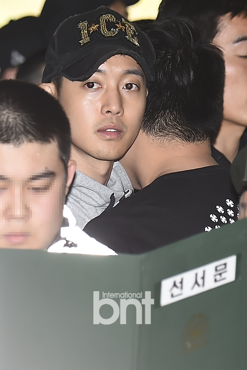 Giữa bão scandal, trưa 12/5, nam ca sĩ - diễn viên điển trai xuất hiện tại địa điểm tập trung cùng trợ lý của mình và một số nhân viên khác trong công ty quản lý KeyEast Entertainment. Rất nhiều fan và phóng viên đã có mặt tại đây để ghi lại những hình ảnh cuối cùng của Kim Hyun Joong trước khi nhập ngũ.