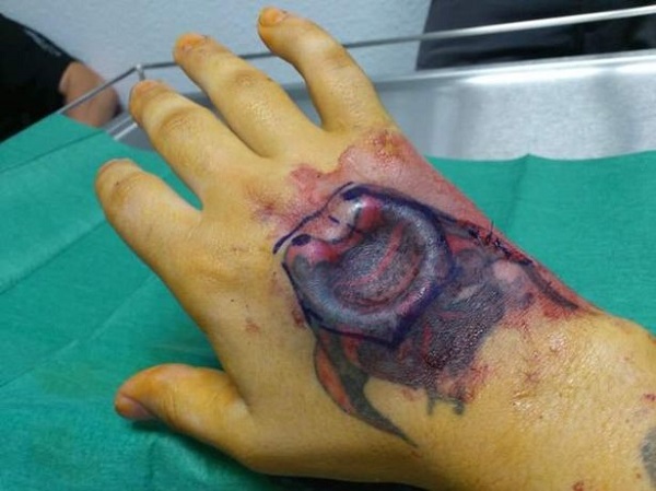Sandro thậm chí còn xăm hình móng ngựa thu nhỏ trên mu bàn tay. |