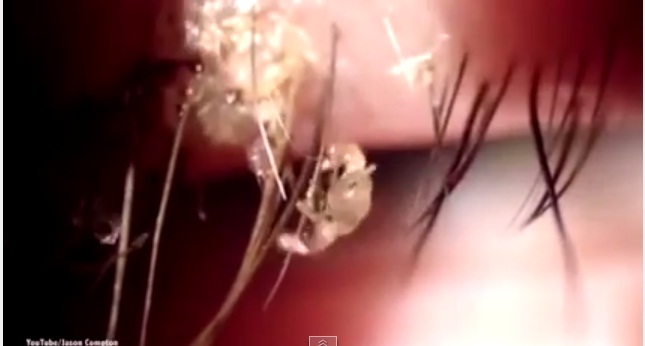 Video sau đó cũng cho thấy cảnh tượng vùng da mi mắt bị nhiễm khuẩn và những quả trứng sắp nở của loài côn trùng này đẻ trên đó. Được biết đến như một loài chấy, các con côn trùng này không nguy hiểm nhưng gây phiền phức. Nó sống nhờ vào máu và da con người và có thể lây lan từ người sang người dễ dàng.