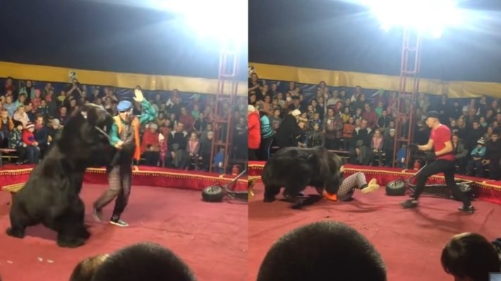 Tại thành phố Olonetz ở nước cộng hoà Karelia (Nga), một con gấu xiếc đã tấn công và cắn người huấn luyện thú khi đang biểu diễn trong rạp xiếc lưu động. Điều đáng nói là khu vực khán giả ngồi không có bất cứ hàng rào bảo vệ nào.
