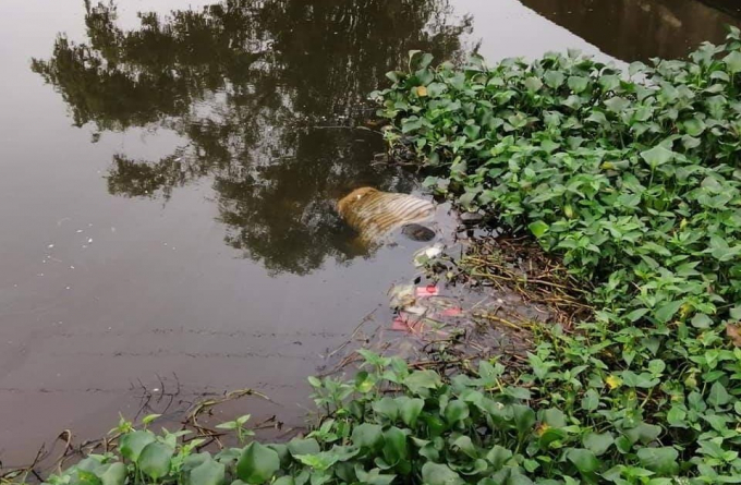 Thi thể người đàn ông nổi trên kênh nước được người dân phát hiện. Ảnh: Pháp luật Việt Nam |