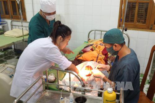 Điều trị cho ngư dân gặp nạn. Ảnh: Nguyễn Đức Quân - TTXVN phát. |