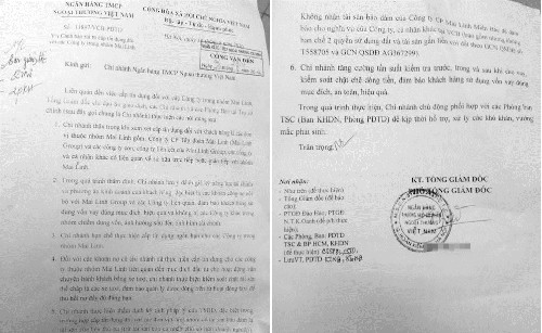 Công văn ngân hàng TMCP Ngoại Thương cảnh báo rủi ro về khả năng vay nợ của tập đoàn Mai Linh. |