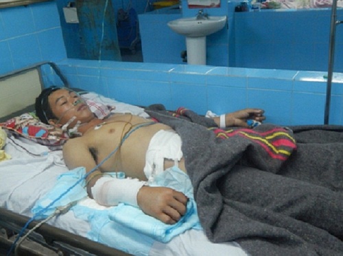 Không dừng lại đó, chiếc lưỡi cưa mất đà lại văng tiếp trúng vào bụng nạn nhân rồi bay ra xa khoảng 5m. Cũng may, một người công nhân gần đó thấy anh A. gục ngã, máu chảy khắp người. Ngay lập tức, nhiều người có mặt đã dùng võng cáng bệnh nhân đi cấp cứu trong tình trạng hết sức nguy kịch. Sau đó bệnh nhân nhanh chóng được chuyển đến cấp cứu và phẫu thuật tại bệnh viện hữu nghị Việt Nam – Cuba (Đồng Hới).