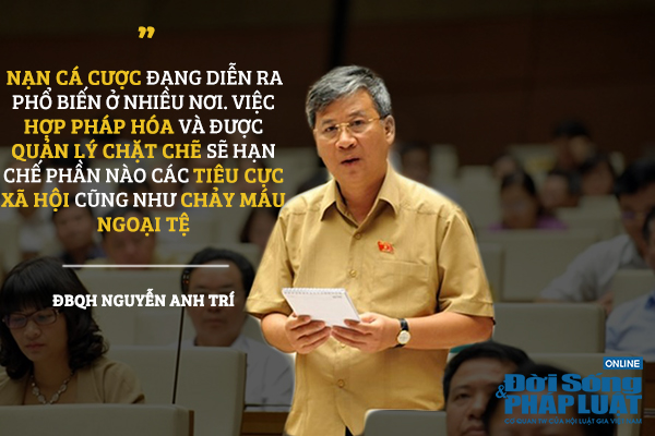 Đại biểu Nguyễn Anh Trí phân tích, tháng 1/2017 Chính phủ đã ban hành Nghị định 06 về thí điểm đặt cược đua ngựa, đua chó và cá cược bóng đá quốc tế. Nhưng lần này sửa một luật đã được thông qua từ năm 2006 và không biết bao lâu nữa mới tiếp tục sửa luật này.