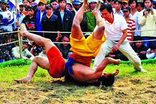 Tranh tài trong lễ hội vật Liễu Đôi. |