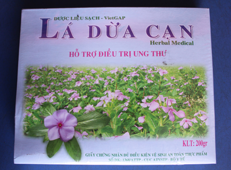 Sau khi đưa sản phẩm cho PV, cô nhân viên quảng cáo: “Chị yên tâm đi, lá cây dừa cạn này tốt lắm, nhiều người bị mắc ung thư thường hay mua sản phẩm này của bên em để uống. Họ khen là rất có hiệu quả. Mà cây dừa cạn bên em trồng theo tiêu chuẩn Vietgap nên về chất lượng, chị hoàn toàn yên tâm”. Khi PV chuẩn bị ra về, cô nhân viên còn không quên nói theo: “Nếu chị muốn mua số lượng lớn thì bên em có dịch vụ giao hàng tận nơi. Mua từ 5 gói trở lên là được miễn phí giao hàng, chị nhé”.