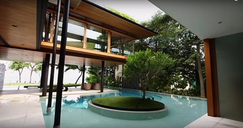 Ngoài ra, Steve còn thiết kế thêm một đảo nho nhỏ ngay ở hồ bơi và trồng thêm hai cây dừa đang cho sai quả. Tuy nhiên, điểm đặc biệt của căn nhà này chính là một phòng giải trí được thiết kế... dưới nước. Theo đó, nếu bạn đứng từ phía ngoài thì sẽ không nhìn thấy hết được.