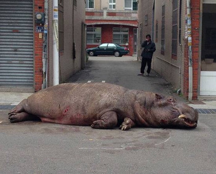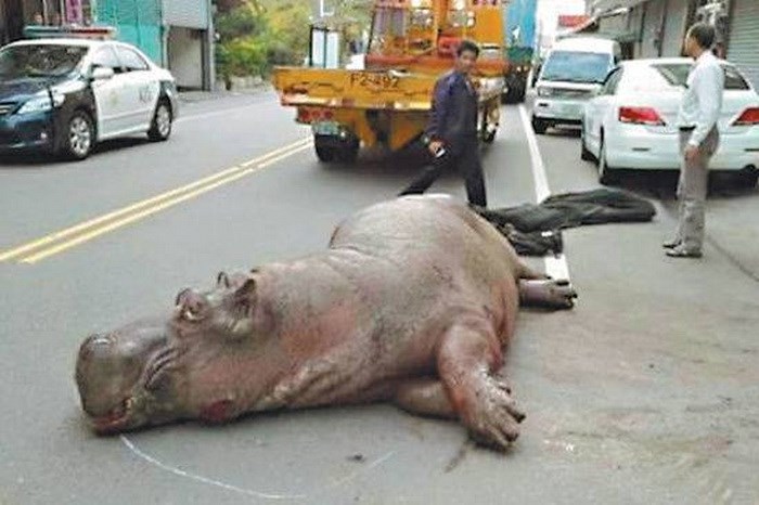Hà mã A-ho đã nằm trên đường phố trong vòng vài giờ cho đến khi cứu hộ tới. |