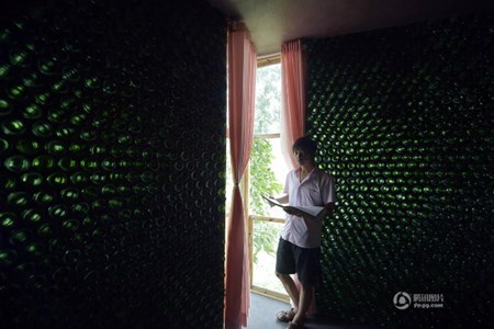 | Li Rongjun đã dành hơn 4 tháng để xây dựng một ngôi nhà từ 8.500 vỏ chai bia. |
