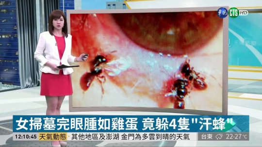Đài truyền hình đưa tin về việc phát hiện có 4 con ong sống trong mắt của một nữ bệnh nhân. Ảnh: CTS. |