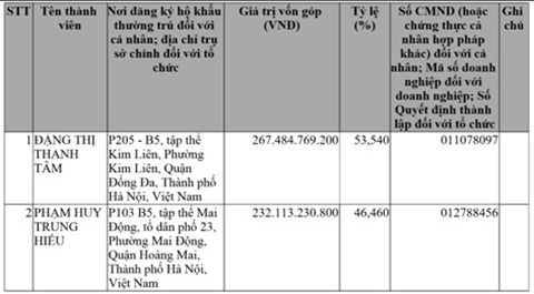 Sau đó, ngày 10/8/2017, bà Trần Thị Hương bất ngờ thay thế ông Phạm Huy Trung Hiếu trở thành người đại diện theo pháp luật của Công ty Lưu Khuyên và thay thế ông Hiếu trở thành thành viên góp vốn đúng bằng số vốn mà ông Hiếu đã đăng ký góp vốn trước đó tại Lưu Khuyên.