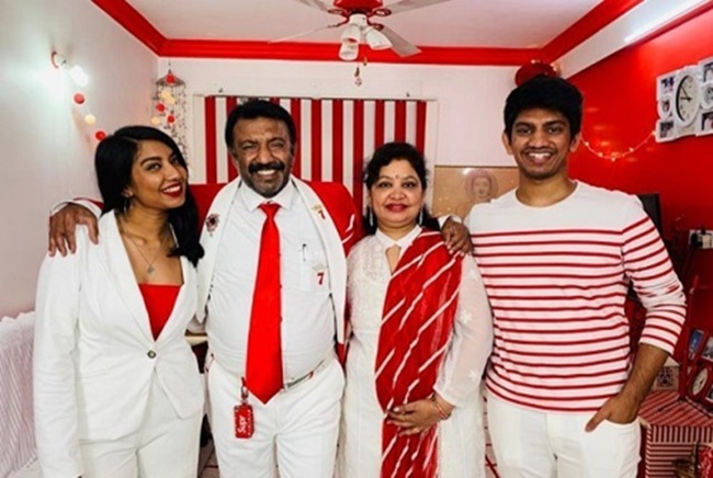 Pushpa, vợ ông đã chấp nhận cách ăn mặc khác biệt của chồng khi kết hôn cách đây 25 năm. Giờ đây, hai đứa con của họ là Bharatraj và Maneesha cũng mặc trang phục màu đỏ và trắng giống cha mẹ.