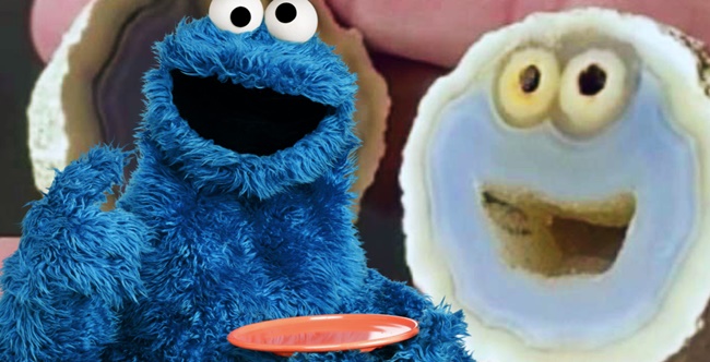 Viên đá mã não mà người ta tìm thấy ở Soledade, một mỏ đá quý ở phía nam Brazil, có vẻ ngoài giống với nhân vật hoạt hình màu xanh dương có đôi mắt to tròn tên là "quái vật bánh quy".