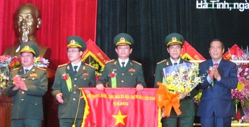 | Bí thư Tỉnh ủy Nguyễn Thanh Bình thừa ủy quyền Chính phủ trao cờ thi đua năm 2013 của Chính phủ cho tập thể BĐBP Hà Tĩnh. |