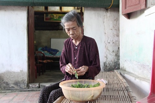 Mặc dù sức khỏe yếu, bà Thủy vẫn cố làm công việc lặt vặt giúp con cháu. |