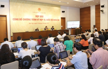 Sáng 19/10 tại Nhà Quốc hội, Văn phòng Quốc hội tổ chức họp báo công bố chương trình kỳ họp thứ 10, Quốc hội khóa XIII. Ảnh: Phương Hoa - TTXVN |