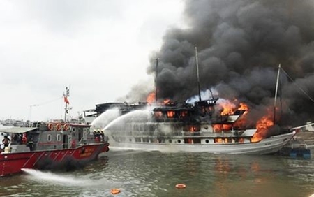 Vụ cháy trên du thuyền Aphrodite ở Hạ Long năm 2016.(Ảnh: Zing.vn) |