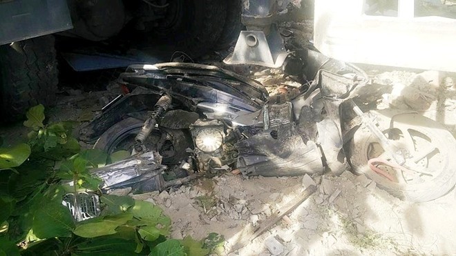 Xe ben chở cát đâm vào cửa hàng sửa chữa xe may khiến 2 người tử vong. |
