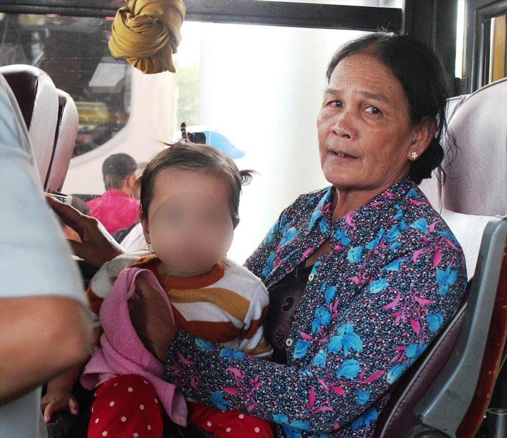 Hai bà cháu trên chiếc xe khách bị va đập vào đầu. Ảnh: Lao Động |