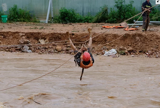 Lo sợ tình hình có thể diễn biến xấu bởi trời vẫn mưa không ngớt, lũ mỗi lúc một dâng cao hơn, lực lượng cứu hộ phải chọn giải pháp bắt cáp ngang suối.
