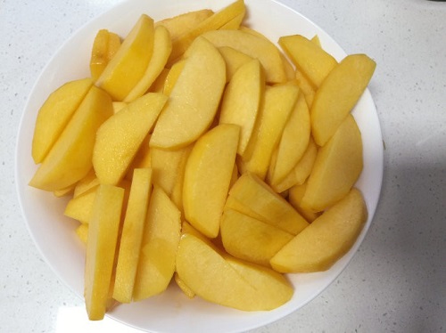 Bước 1: Đầu tiên bạn hãy rửa thật sạch và gọt vỏ quả đào