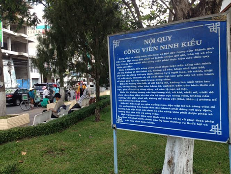 ![]() Nội quy công viên Ninh Kiều chỉ bằng Tiếng Việt, không có tiếng nước ngoài. |