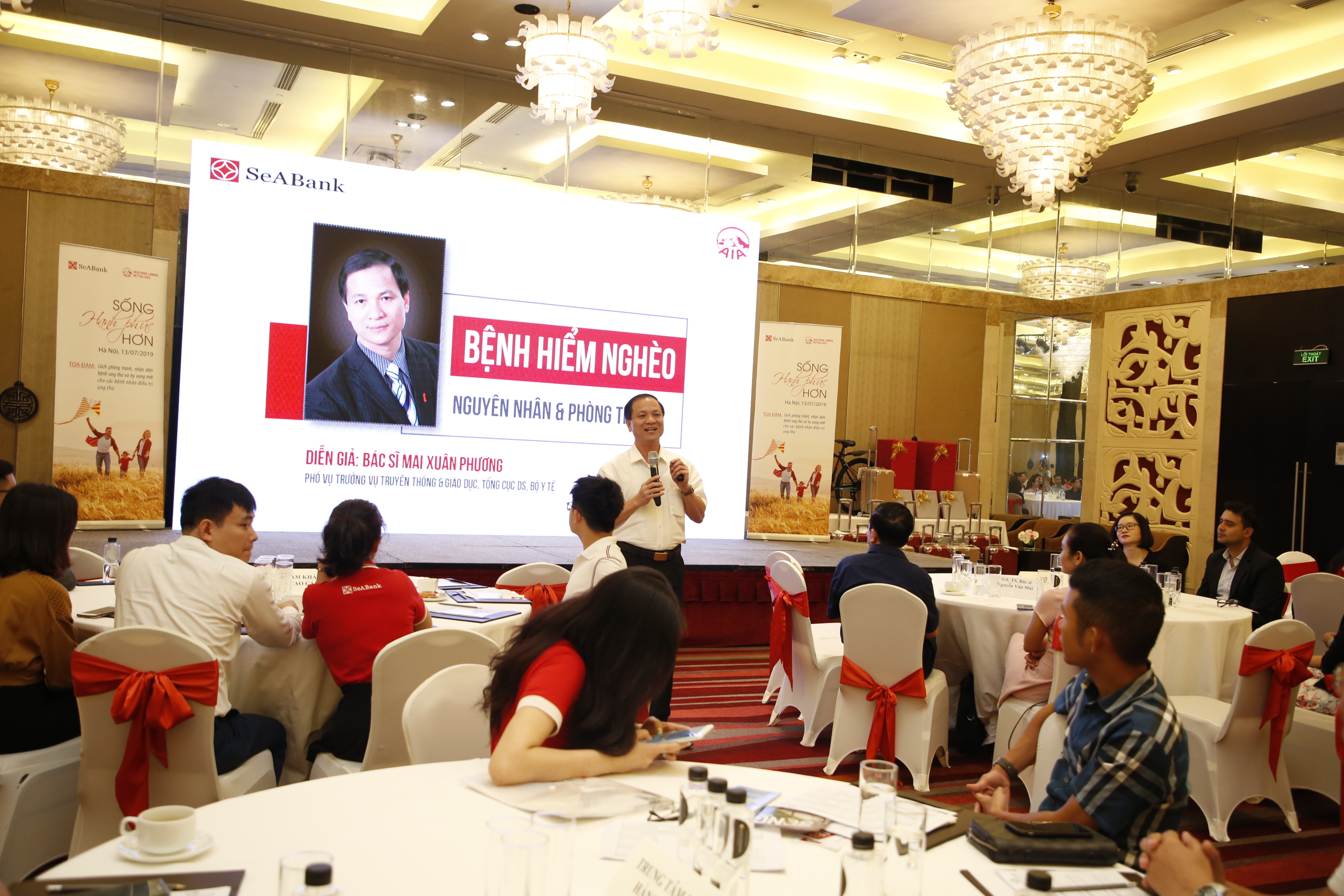 Với mục tiêu đồng hành cùng khách hàng để có cuộc sống hạnh phúc hơn, Ngân hàng TMCP Đông Nam Á (SeABank) mới đây đã tổ chức 2 cuộc hội thảo “Sống hạnh phúc hơn” tại Hà Nội và Tp. Hồ Chí Minh, trong đó nổi bật là buổi tọa đàm “Cách phòng tránh, nhận diện bệnh ung thư và hy vọng mới cho các bệnh nhân điều trị bệnh ung thư” với sự tham gia của các chuyên gia y tế gồm BS. Mai Xuân Phương - Phó Vụ trưởng Vụ Truyền thông - Giáo dục, Tổng cục Dân số (Bộ Y tế), TS. Vũ Văn Vũ - Trưởng Khoa nội 1 - Bệnh viện Ung bướu Tp. Hồ Chí Minh nhằm cung cấp thêm cho khách hàng những thông tin hữu ích để phòng và chống bệnh hiểm nghèo, đặc biệt là ung thư.