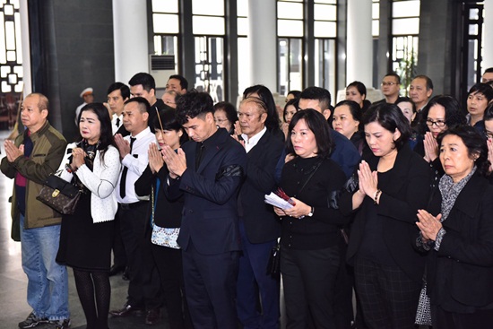 | NSƯT Xuân Bắc dẫn đầu đoàn nghệ sĩ Nhà hát kịch Việt Nam đến tiễn đưa đồng nghiệp. Ảnh: Tri thức trực tuyến |