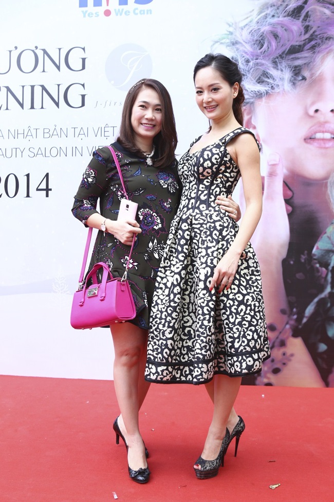 Nữ diễn viên bị thu hút bởi cô con gái dễ thương của ca sĩ Thiên Vương, thành viên nhóm MTV. Cô vui vẻ cười đùa và bế bổng con gái của Minh Vương lên hôn má. Bố con Thiên Vương cũng nhận được nhiều sự quan tâm và xin chụp ảnh chung của quan khách tham dự.
