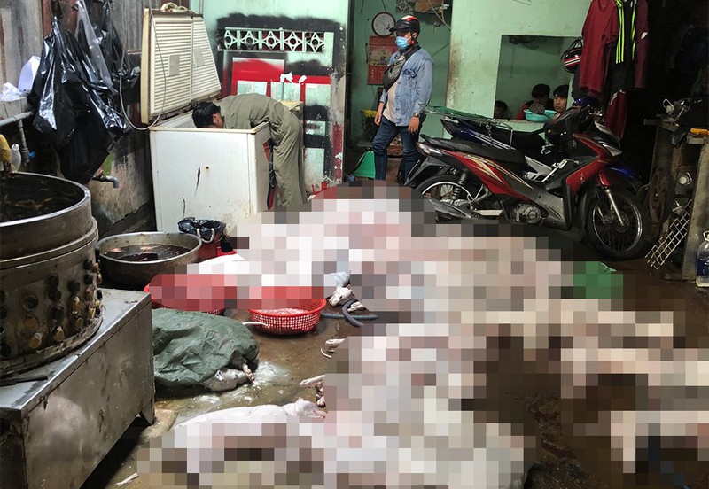 Tại căn nhà, lực lượng chức năng phát hiện một số nhân công đang giết mổ chó với số lượng 490 kg (51 con chó) và một số dụng cụ bắt trộm chó.
